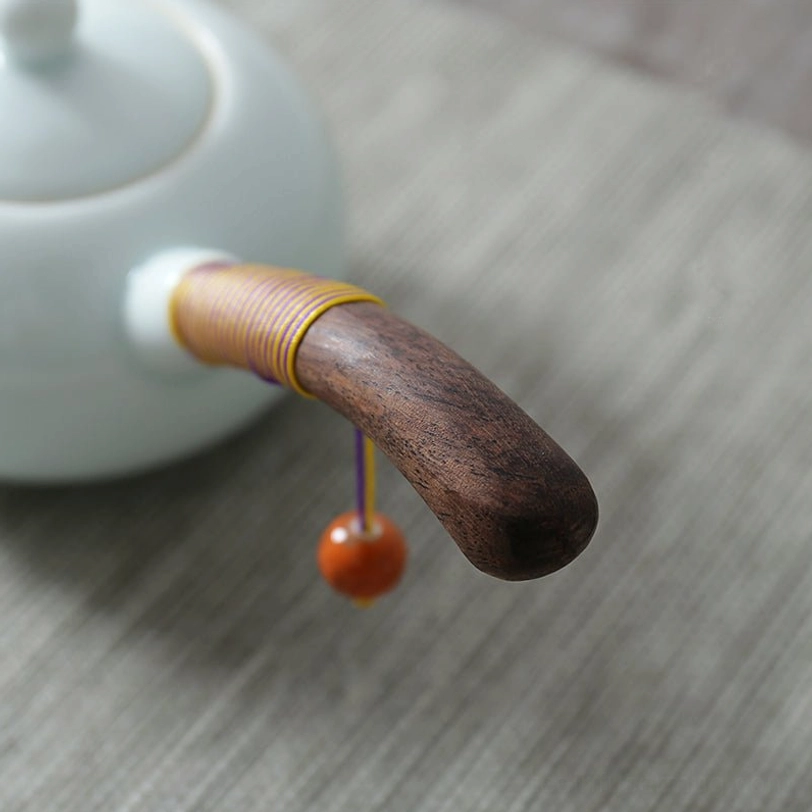 - Heat-Insulated Wooden Side Handle: Naturally low-conductivity solid wood stays cool to the touch even with boiling hot water inside. The colored wrapped cord adds extra grip strength and a beautiful decorative touch, while the hanging orange bead accent brings subtle traditional charm.