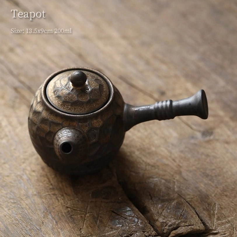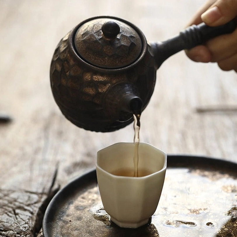 Side handle teapots have a long history in East Asian tea ceremony, valued for their practicality and understated aesthetics. This textured retro teapot matches the quiet, relaxing spirit of traditional tea culture, making it a thoughtful gift for tea lovers, housewarmings, birthdays, or holiday gifts for anyone who appreciates artisanal tea ware.