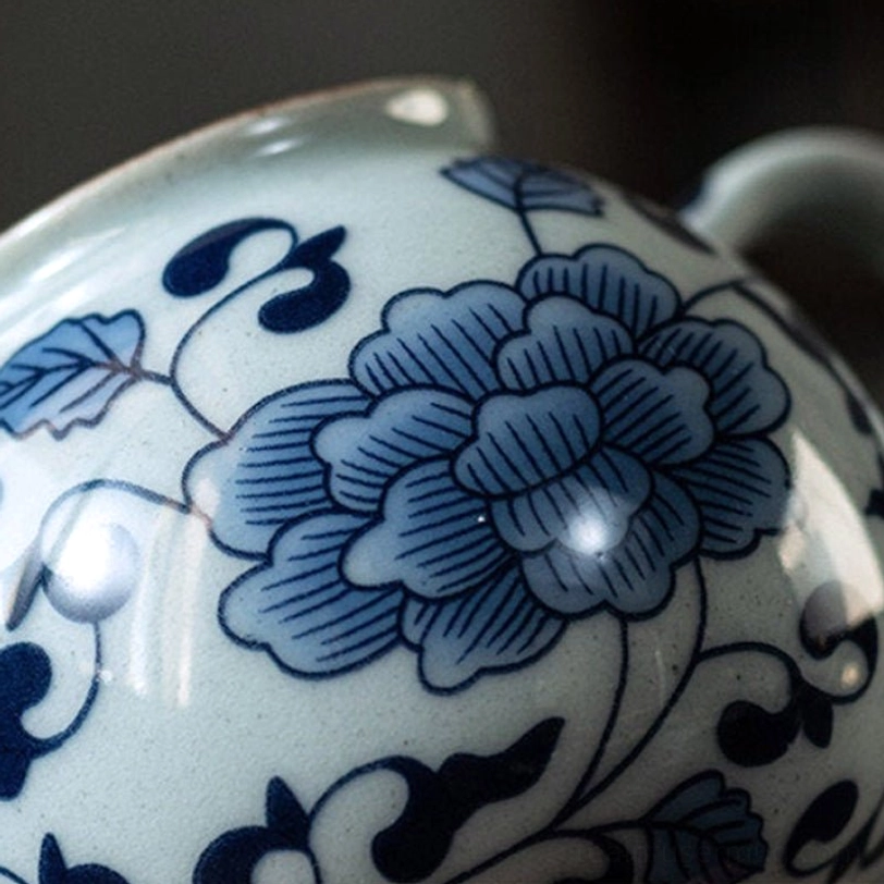 Rooted in centuries of Chinese ceramic tradition, this blue and white porcelain teapot brings timeless elegance to every tea moment. Blue and white porcelain (qinghua ci) is one of China’s most iconic art forms, beloved worldwide for its clean, harmonious color palette and delicate decorative motifs that carry cultural meaning: the peony pattern on this teapot symbolizes prosperity, good fortune, and natural beauty.