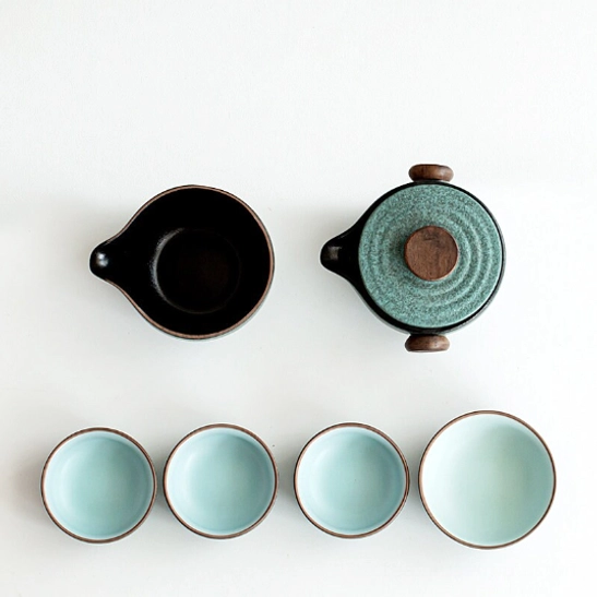 Complete 6-piece Travel Tea Set with carrying case, perfect for gongfu tea on the go. Ideal for travel, camping, office use and gifting to tea lovers.