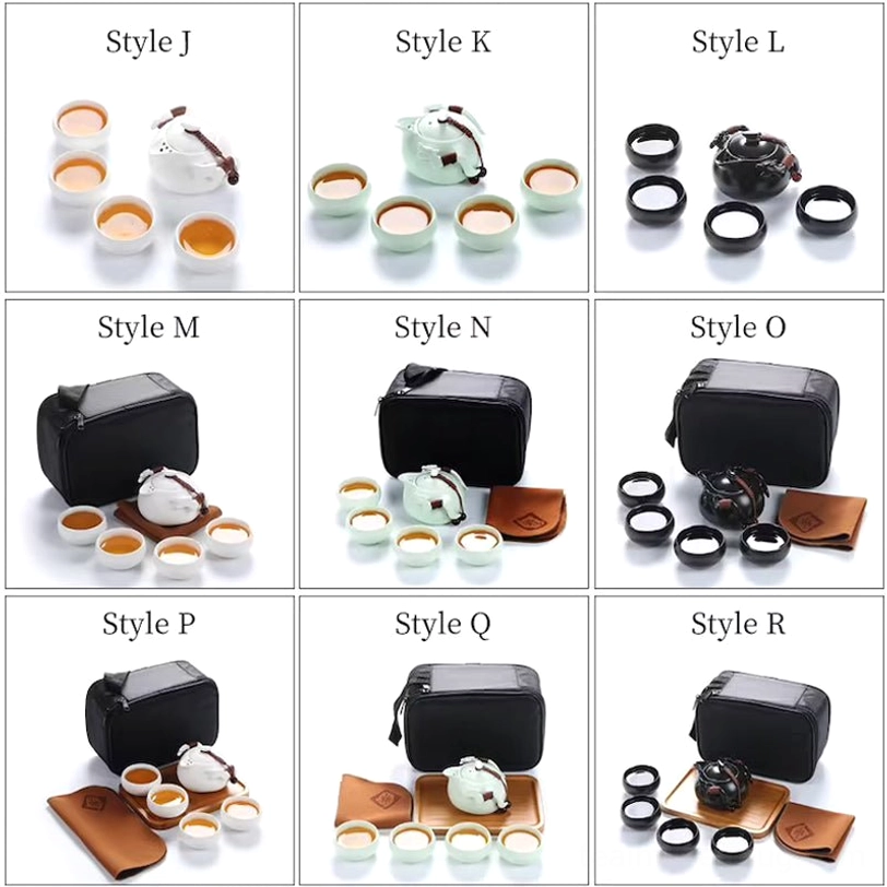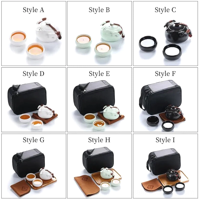 Premium compact ceramic Travel Tea Set with multiple configurations, perfect for on-the-go brewing during travel, camping, office use and outdoor adventures.