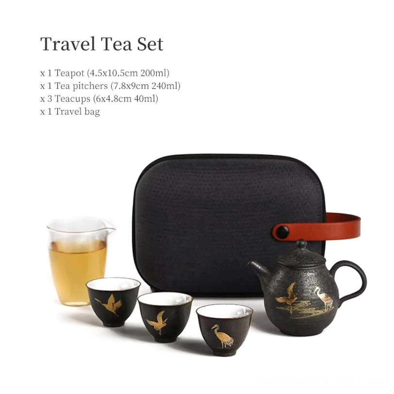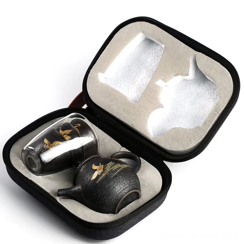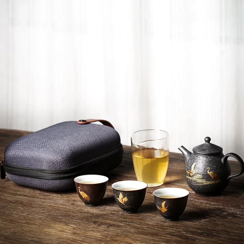 The golden crane pattern on this travel tea set carries deep meaning in traditional Chinese culture. Cranes are symbols of good fortune, longevity, and elegance, making this set not just a practical tea tool, but also a meaningful gift for tea lovers, elders, and business partners.