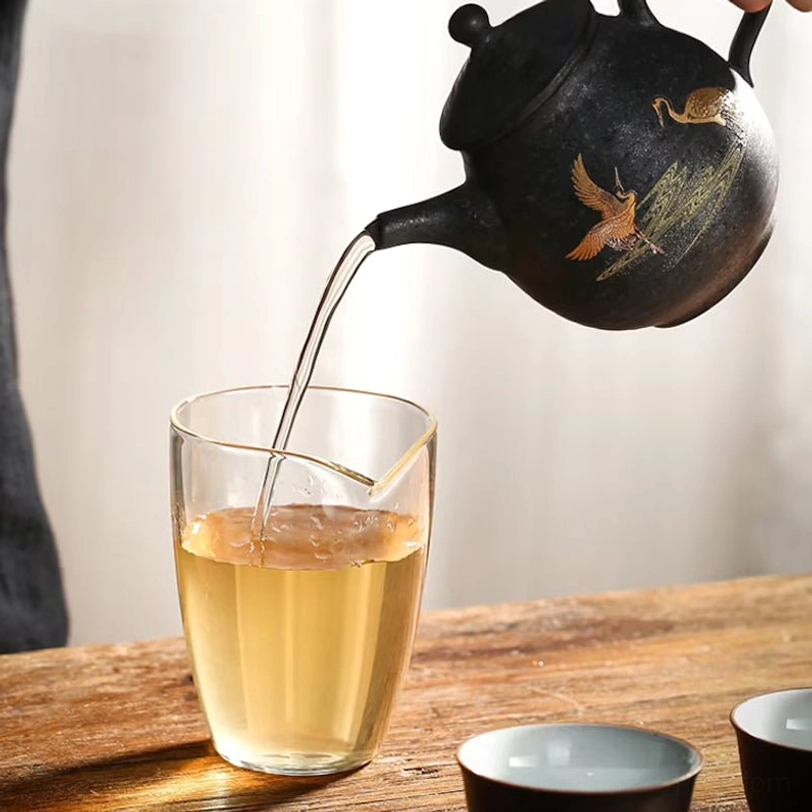 - Elegant Design: New Chinese style combines traditional black ceramic with elegant golden crane accents, pairing a modern clear glass pitcher for a balance of classic beauty and practical function