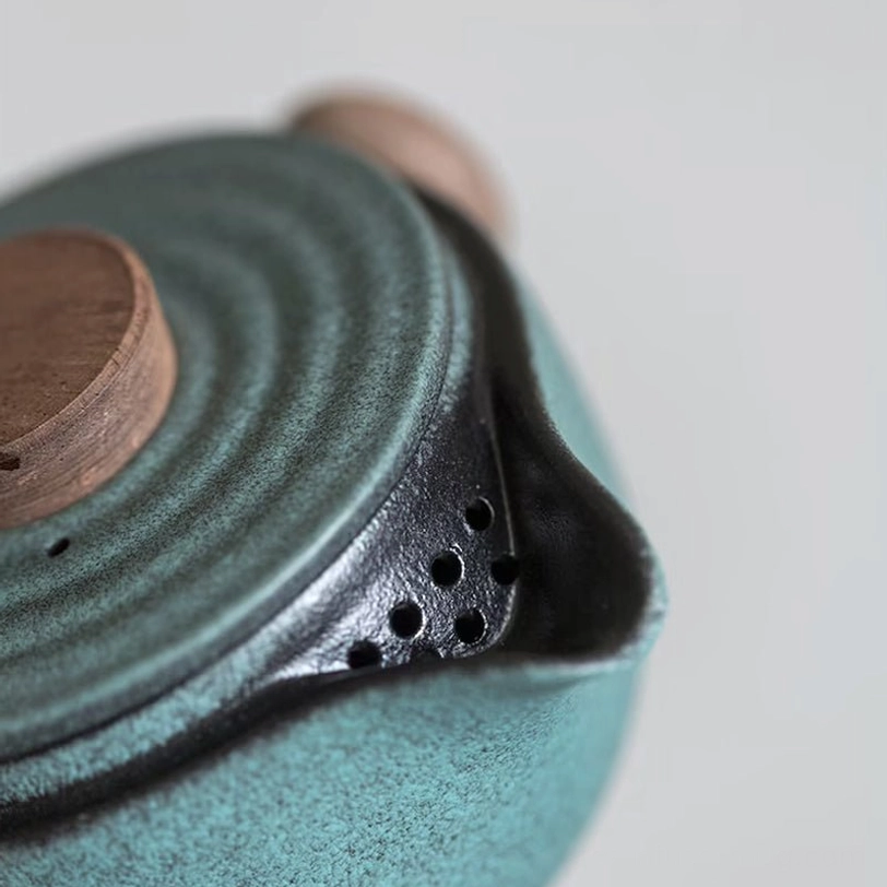 • 1 x 150ml Ceramic Teapot (4″ x 2.6″, 5oz) – built-in filter holes for smooth, leaf-free tea, with heat-resistant wood handle and lid