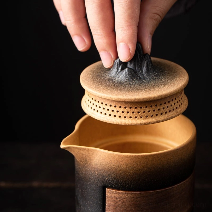 - Thoughtful Functional Design: The mountain-shaped lid doubles as a built-in tea strainer, blocking loose leaves for perfectly clear, smooth tea every time. The fair pitcher (tea pitcher) features a precision spout for drip-free pouring, and evenly distributes tea flavor for every cup.