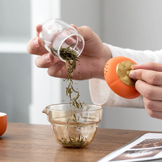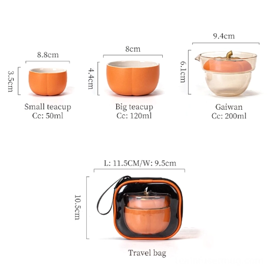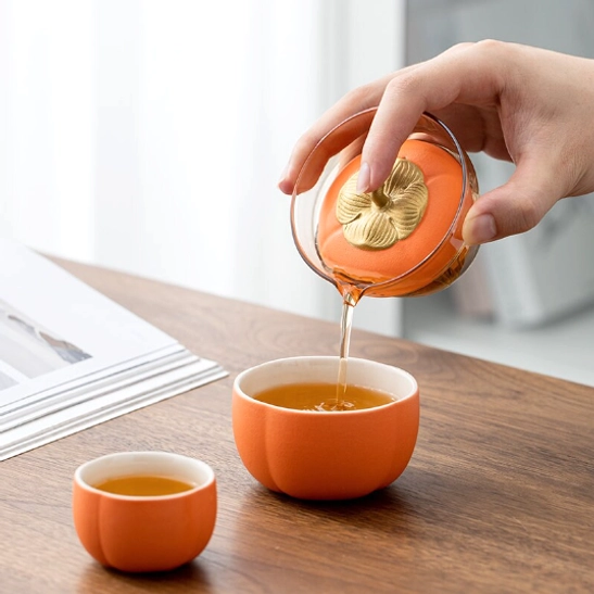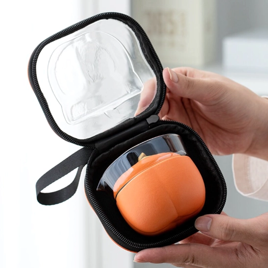 - Unique creative design: Bright warm orange with a delicate gold persimmon stem detail gives this set a playful, elegant look that stands out from generic plain travel tea sets.