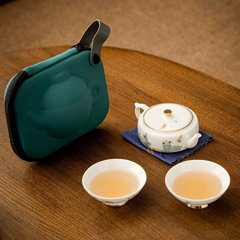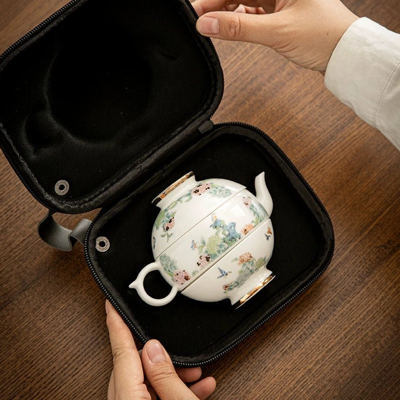 - Material: Food-safe high-fired porcelain (tea ware), hard EVA outer + soft velvet lining (travel case)