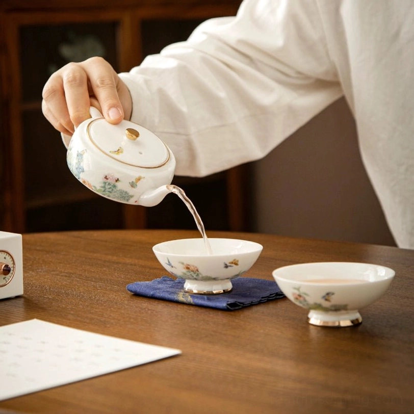 - Elegant Traditional Floral Bird Design: Delicate floral and bird motifs on a clean white porcelain base, accented with subtle gold detailing, bring a touch of traditional Chinese artistry to every tea session.