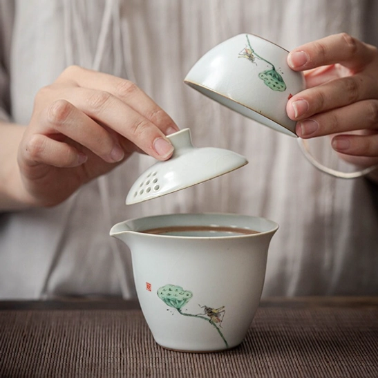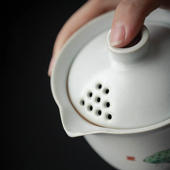 • Built-in Strainer Design: The perforated lid of the gaiwan teapot filters leaves automatically while pouring, no extra strainer required