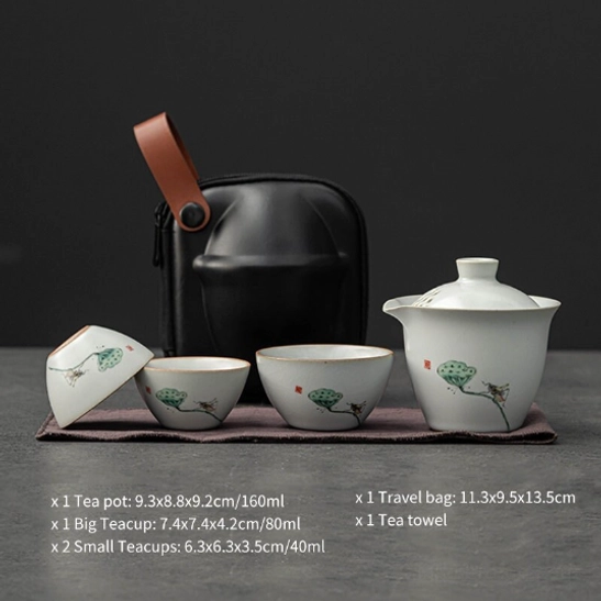 160ml Portable Ceramic Gongfu Travel Tea Set – Lotus Pattern