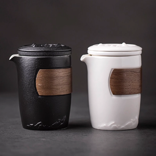 - Practical Heat-Resistant Details: Natural wood heat pads on the teapot handle and teacups prevent burns, even when you’re steeping boiling hot tea. The textured mountain relief design on ceramic surfaces adds subtle cultural charm and non-slip grip.