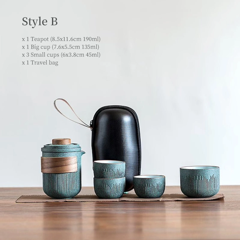 | Style A Set Includes: | 1茶壶 + 3 small teacups + 1 travel case |