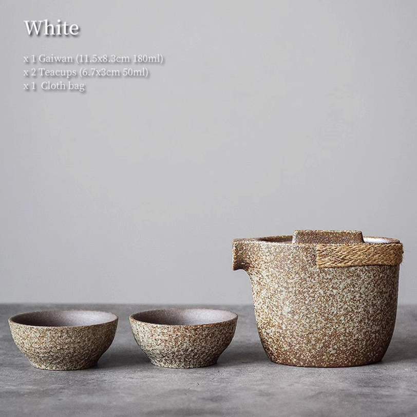 Portable Ceramic Travel Tea Set 180ml – 1 Gaiwan 2 Teacups with Bag