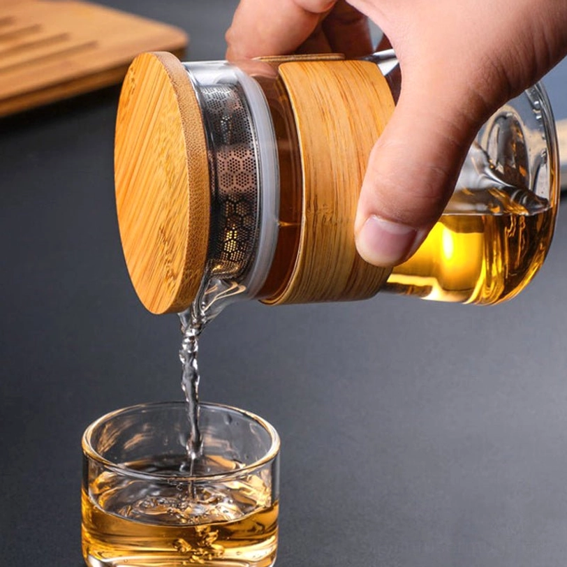 • Premium Safe Materials: Crafted from food-grade high borosilicate glass, this set is heat-resistant, handles rapid temperature changes, and won’t absorb odors or stains. The natural bamboo sleeve and lid add eco-friendly insulation for comfortable, burn-free holding. The 304 stainless steel infuser provides long-lasting corrosion resistance and excellent filtration.