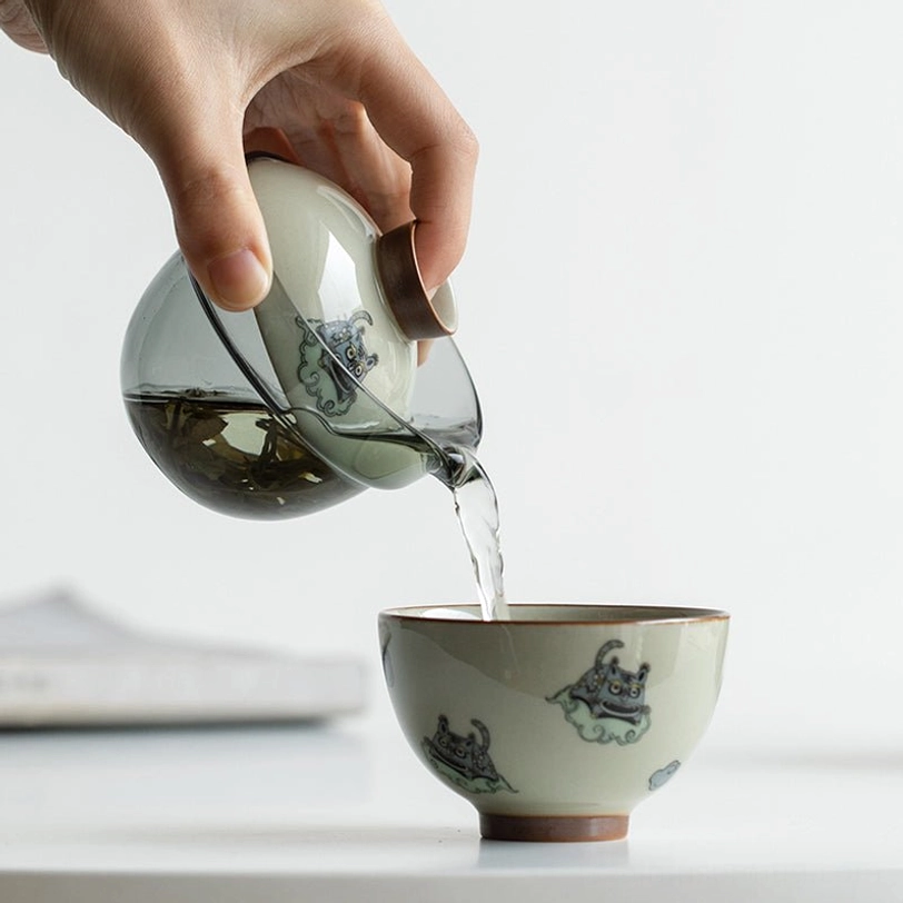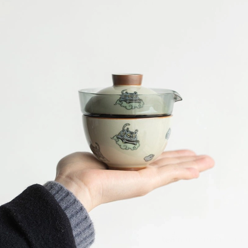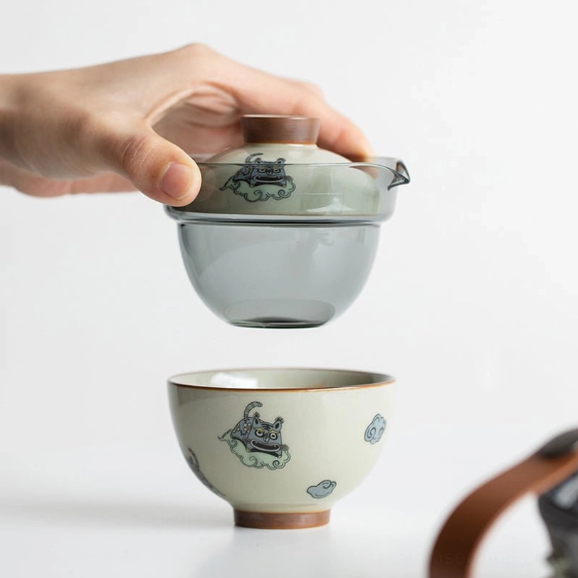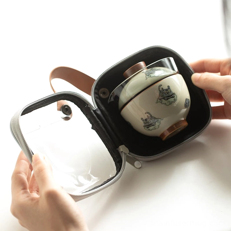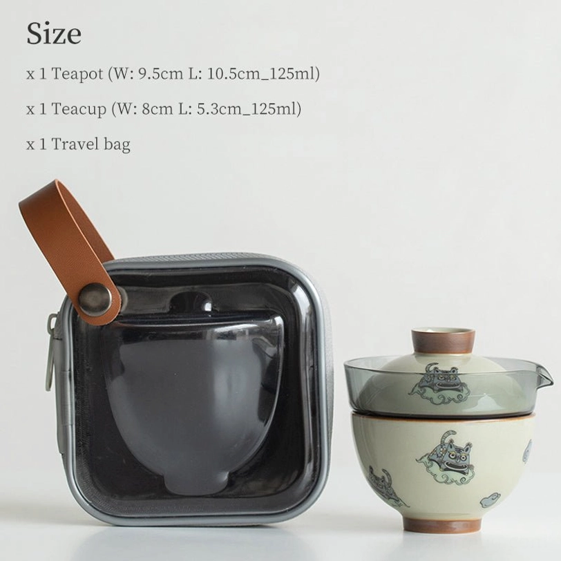 Adorned with classic Chinese auspicious patterns including qilin (a legendary gentle Chinese beast) and auspicious clouds, this travel tea set carries well-wishes for peace, good fortune and gentle enjoyment of life. In Chinese culture, portable tea sets have long been carried by scholars and travelers to connect with nature and find calm amid journeys, a tradition that lives on in this modern design.