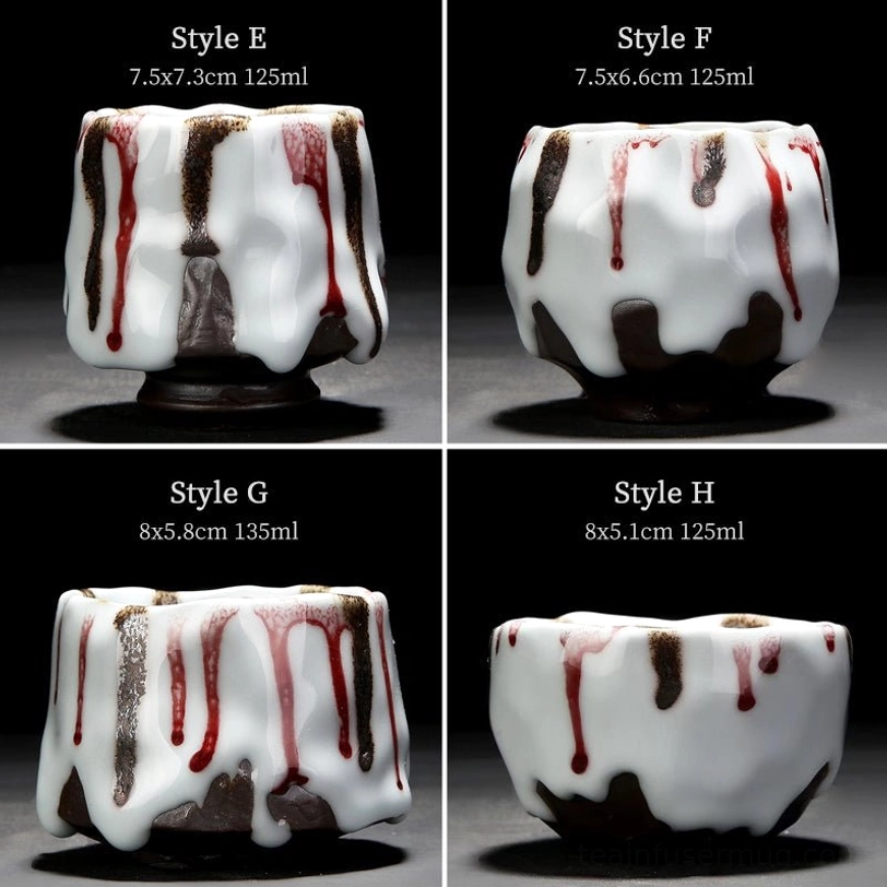 - One-of-a-kind flowing glaze finish: Each cup features natural red and brown glaze drips over a clean white base, creating a unique art piece that no two cups are identical