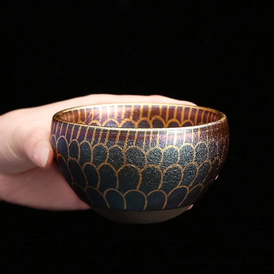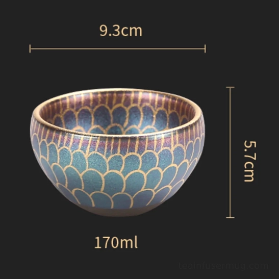 - Unique Iridescent Glaze Effect: This Jianzhan tea cup features delicate gold-accented floral patterns that shift in color from blue, green, gold to purple depending on light and viewing angle. No two cups are exactly alike, making yours truly unique.