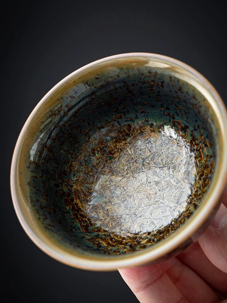 - Unique Glaze Finish: Features a natural crystalline glaze on a deep blue-green base, accented with warm gold speckles. Every cup has a one-of-a-kind pattern, no two are identical
