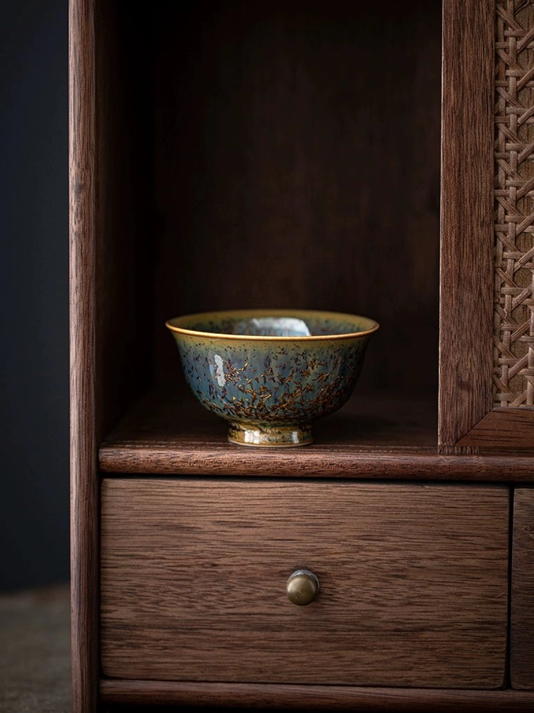 Jianzhan (Jian Kiln) tea ware originated in China’s Song Dynasty (960–1279 AD), where it was the most cherished cup for tea competitions among scholars and royals. The natural unique glaze patterns of each Jianzhan cup are celebrated as a reflection of harmony between human craft and nature, symbolizing good fortune and originality in Chinese culture.