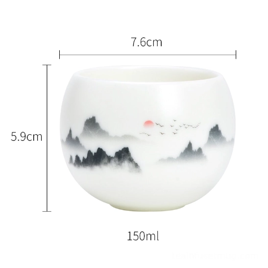 - Timeless Cultural Design: Features an elegant ink-wash landscape pattern (mountains, rising sun, flying bird) inspired by traditional Chinese shan shui painting, bringing the serenity of nature to your tea table. The crisp white porcelain base balances classic art with modern minimalism, fitting any decor style.