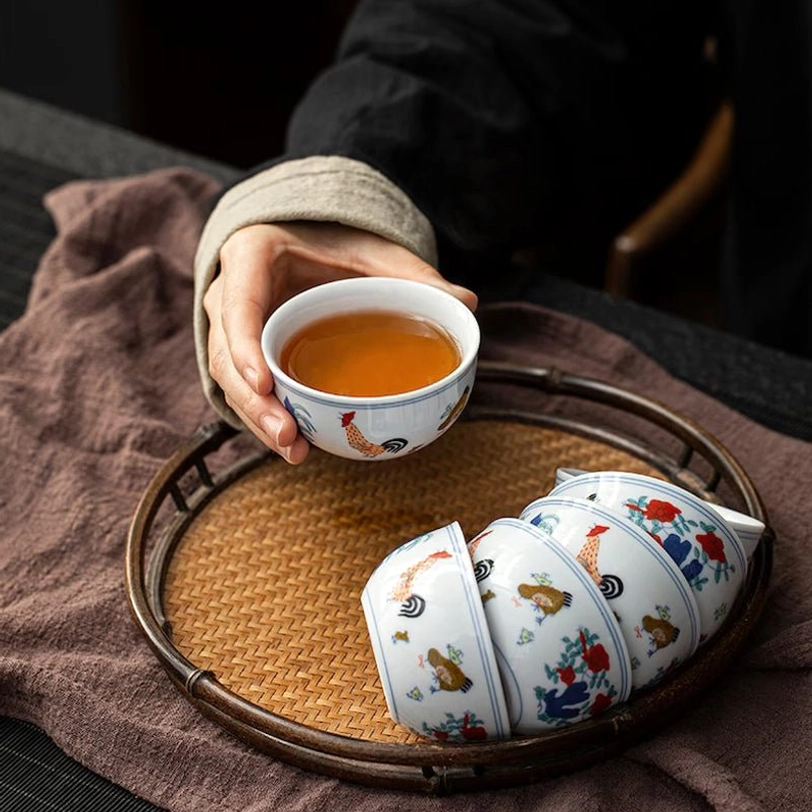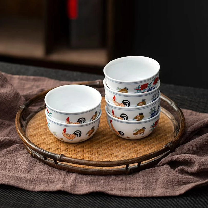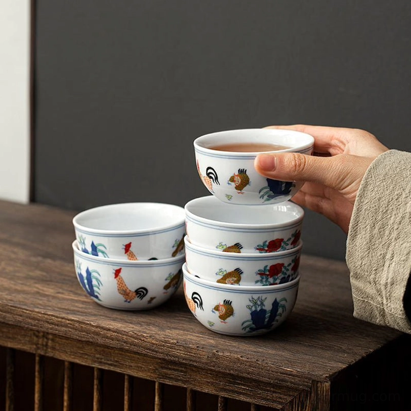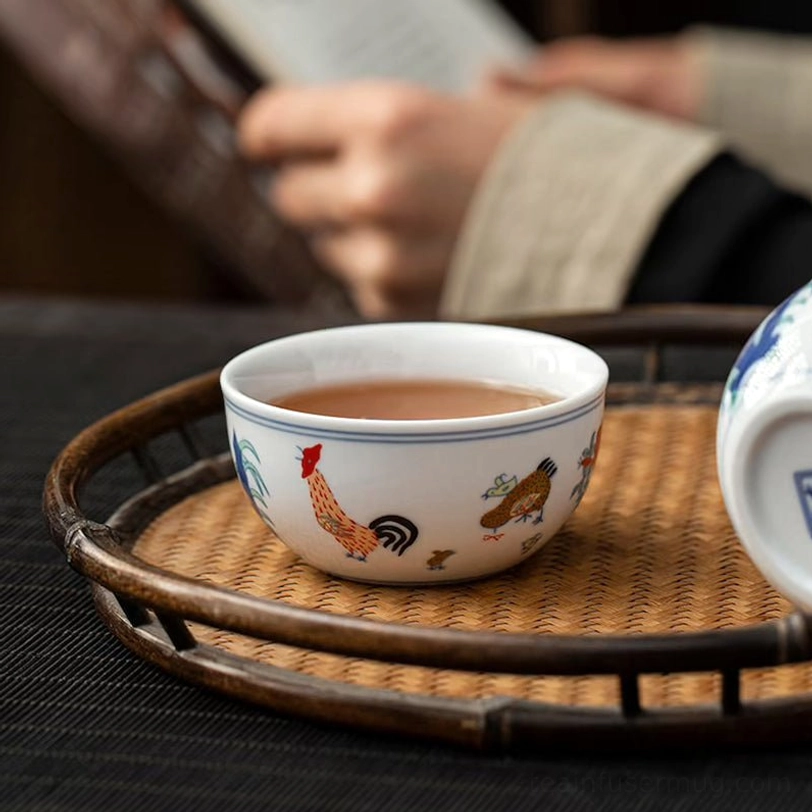 The chicken cup is one of the most iconic designs in the history of Chinese porcelain, dating back to the Ming Dynasty (1368–1644). These cups have been prized by collectors and tea lovers for centuries for their intricate artwork and cultural significance. In Chinese culture, chickens symbolize good fortune, prosperity, and family unity, making these cups both a beautiful teaware piece and a meaningful cultural item.