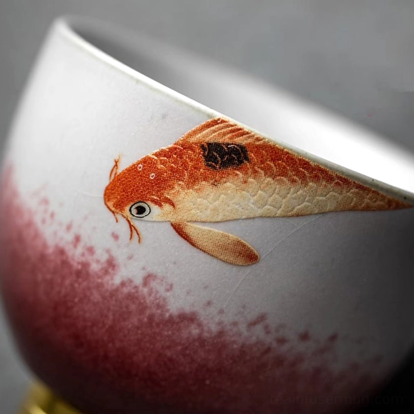 In Chinese culture, koi fish (锦鲤, jǐn lǐ) are one of the most beloved auspicious symbols. Koi represent good fortune, abundance, prosperity, and perseverance — making this tea cup far more than just a functional piece of teaware, it is a token of good wishes for the holder.