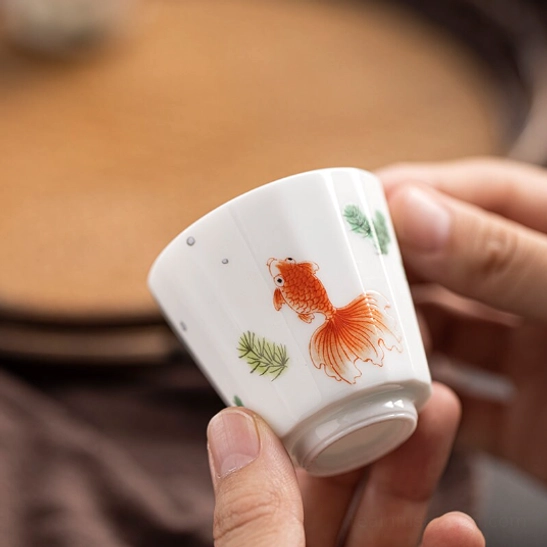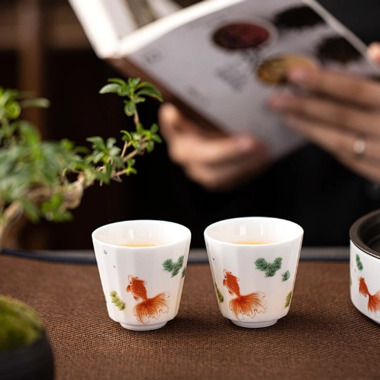 Bring the timeless elegance and rich cultural meaning of traditional Chinese tea culture to your daily ritual with this set of six beautifully crafted koi fish porcelain tea cups. Designed for authentic gongfu tea tasting, these small-sized cups are made to enhance the aroma and flavor of every steep.
