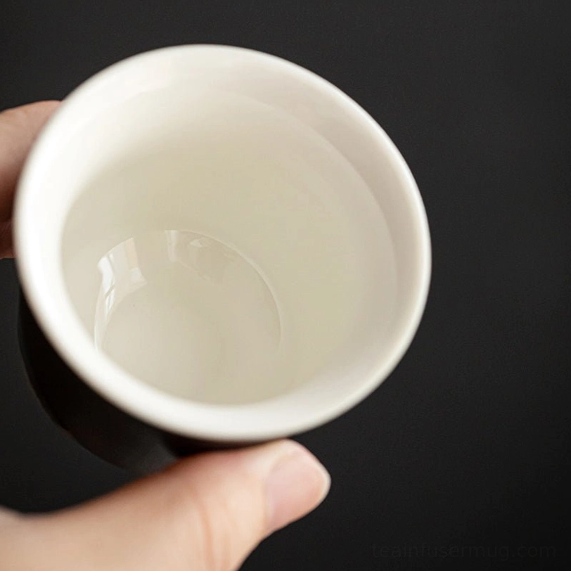 - Premium Ceramic Construction: Fired from high-quality clay at high temperatures, this tea cup features a stable matte black outer glaze for a non-slip comfortable grip, and a glossy white inner glaze that makes it easy to check tea liquor color and clean after use.