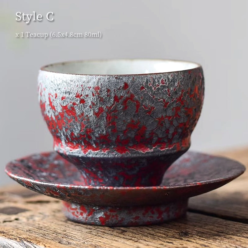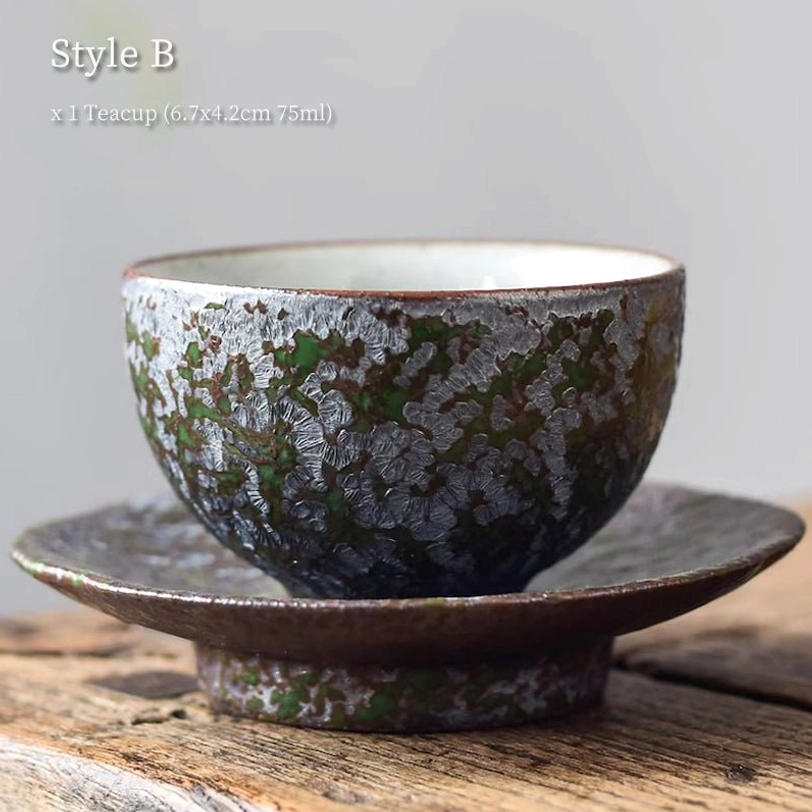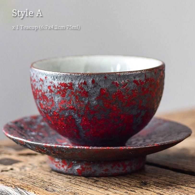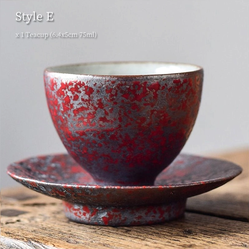 Rooted in thousands of years of Chinese ceramic tradition, this iron rust glaze tea cup set brings natural artistry to your daily tea ritual. The one-of-a-kind speckled glaze pattern on every cup makes it uniquely yours, blending traditional porcelain craftsmanship with modern aesthetic taste.