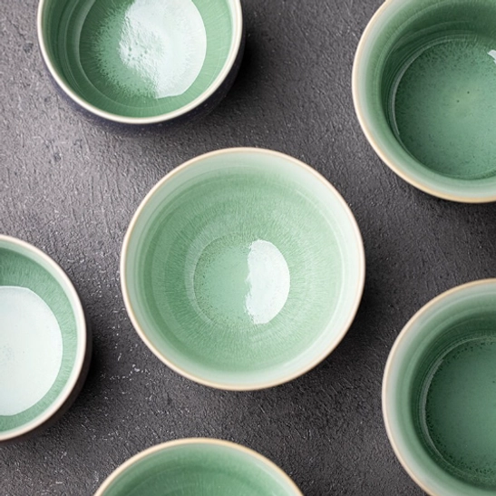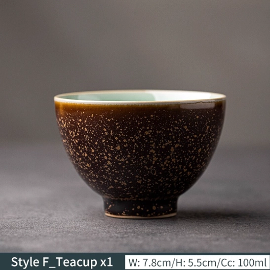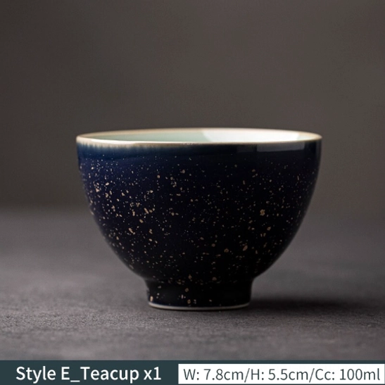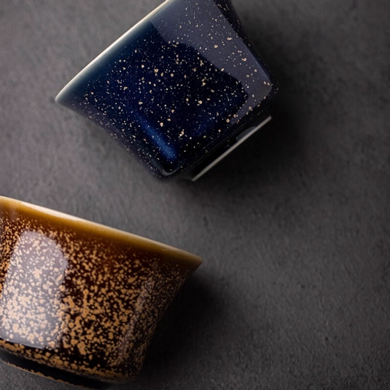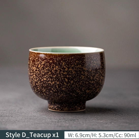In traditional Chinese tea culture, kiln transformation (yao bian in Chinese) is a highly sought-after firing technique that creates one-of-a-kind glaze patterns on each ceramic piece. During high-temperature firing, the glaze shifts and reacts naturally in the kiln, resulting in unique speckled patterns that no two cups are exactly alike. This set of kiln transformed Chinese tea cups blends traditional craftsmanship with modern minimalist design, perfect for elevating your daily tea ritual.