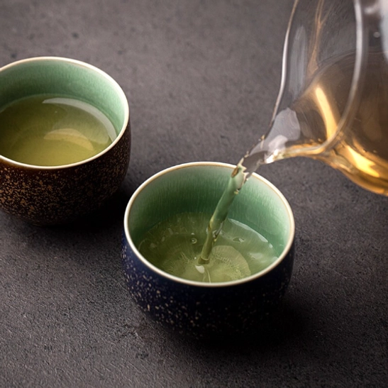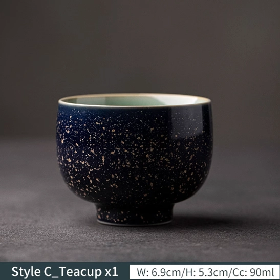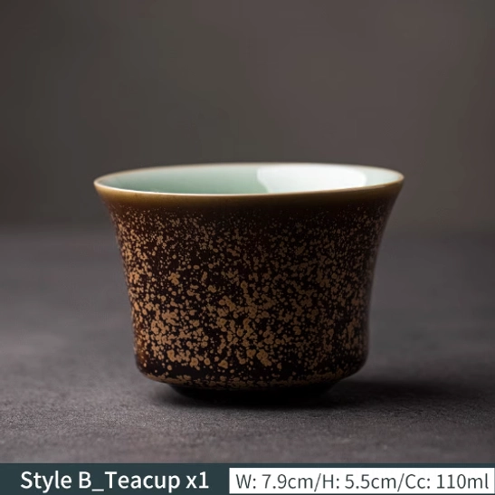- Unique Speckled Glaze Design: Each cup features a dark outer glaze with subtle golden speckles (reminiscent of a starry night sky) paired with a soft, light green inner glaze for a striking, balanced contrast. The smooth glaze adds an elegant touch to any tea setup.