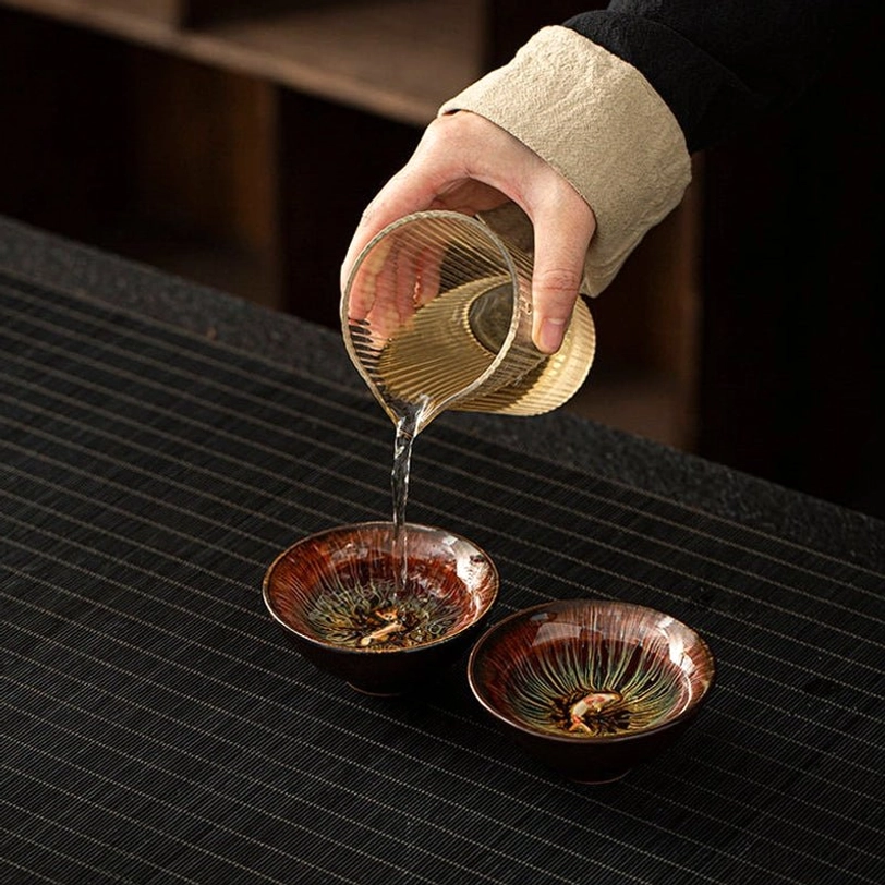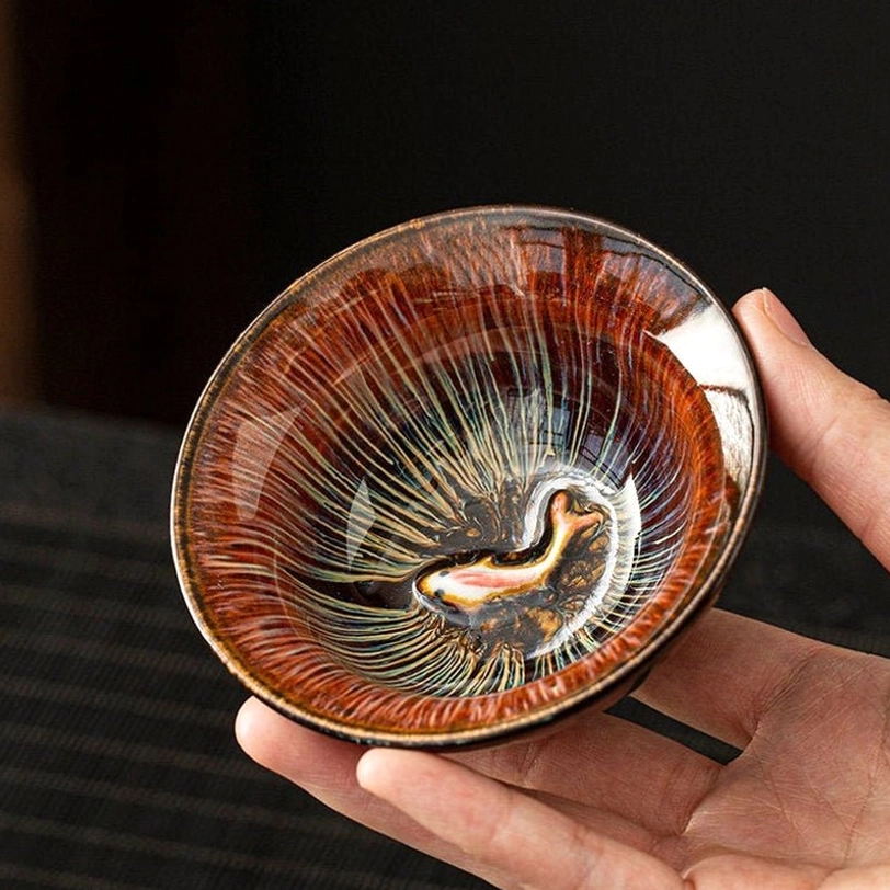 Originating from Song Dynasty China, Jian Zhan (Jian Kiln) tea ware has been treasured by tea enthusiasts for centuries for its unique natural glaze effects and deep connection to traditional tea culture. This set of 2 Jian Zhan koi tea cups brings timeless tradition and meaningful design to your daily tea ritual.
