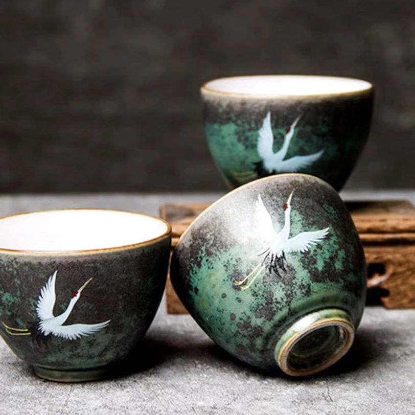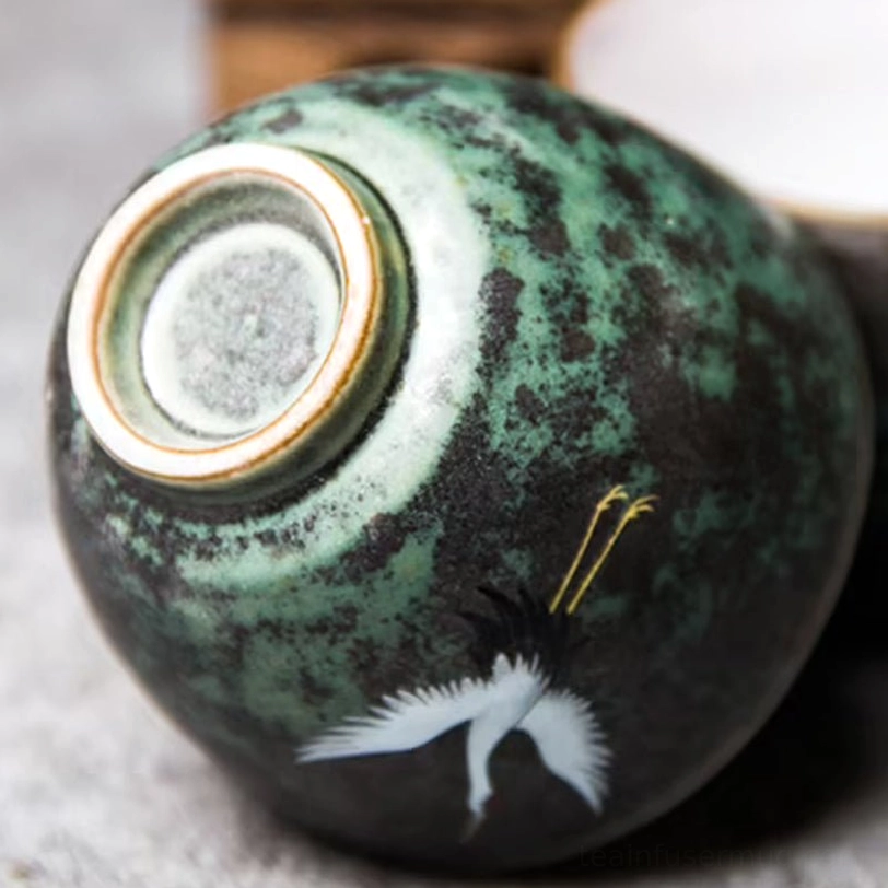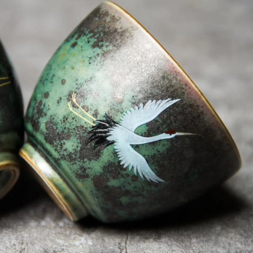 This handcrafted ceramic crane tea cup blends centuries of Chinese tea culture with modern aesthetic taste, designed to elevate your daily tea tasting experience. The iconic red-crowned crane motif on a vintage green glazed body makes this cup far more than just a drinking vessel – it’s a piece of functional art for any tea lover.